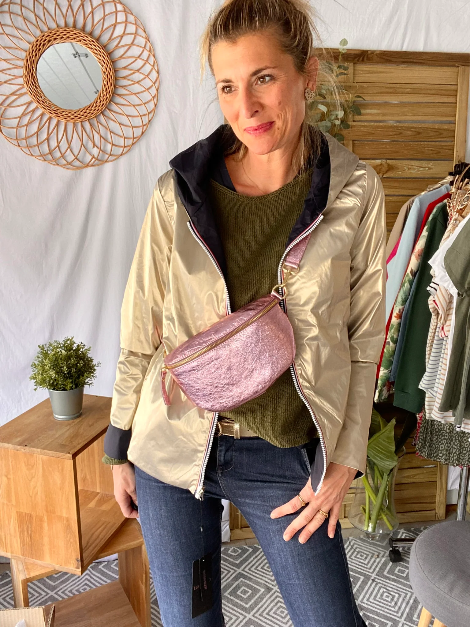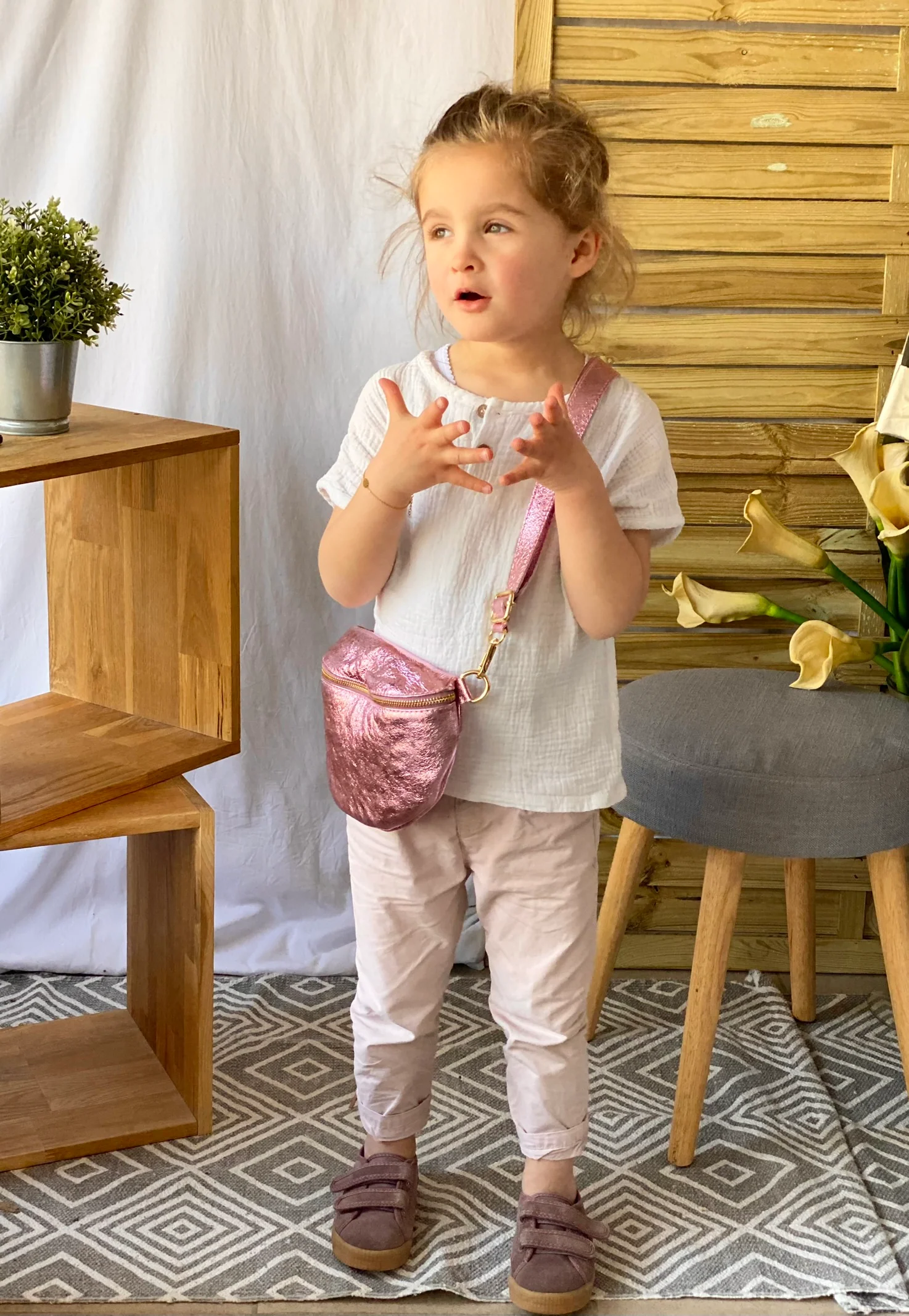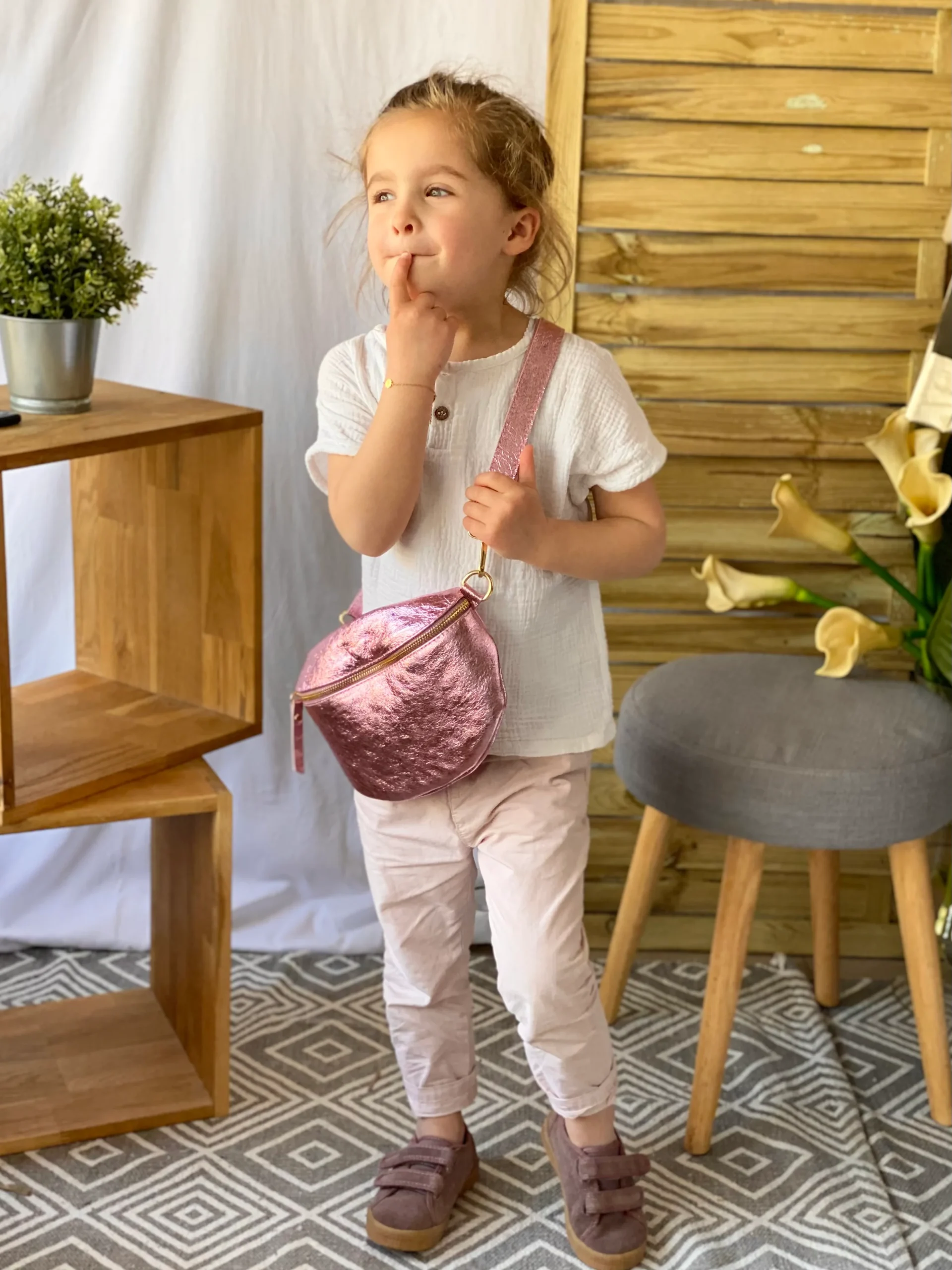 Sac banane M en cuir irisé 24cm ROMY Rose clair (12 coloris)