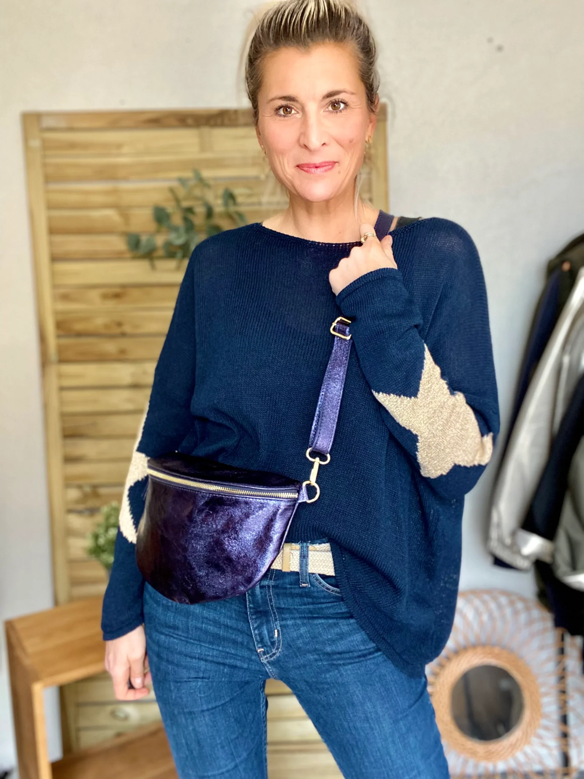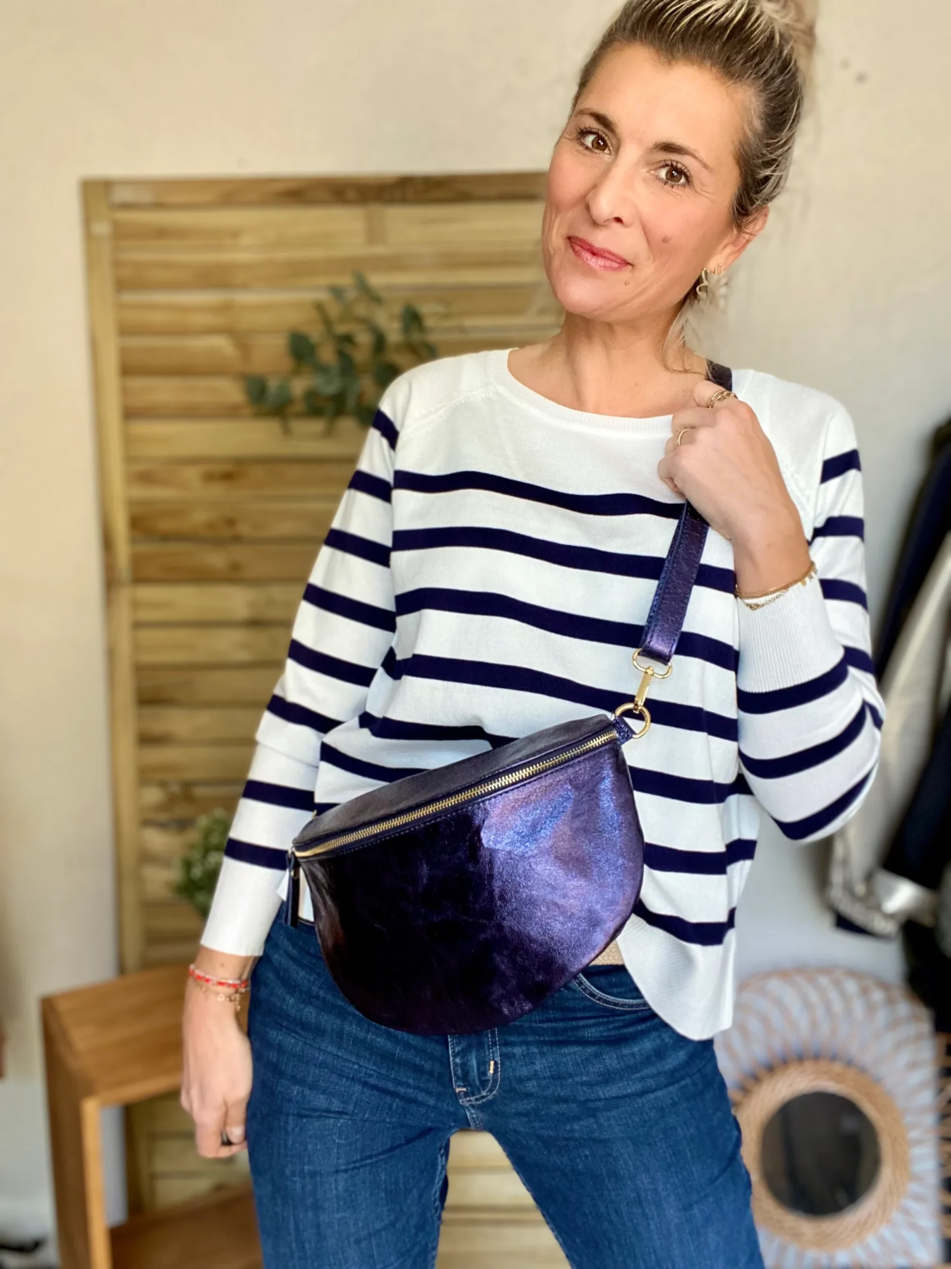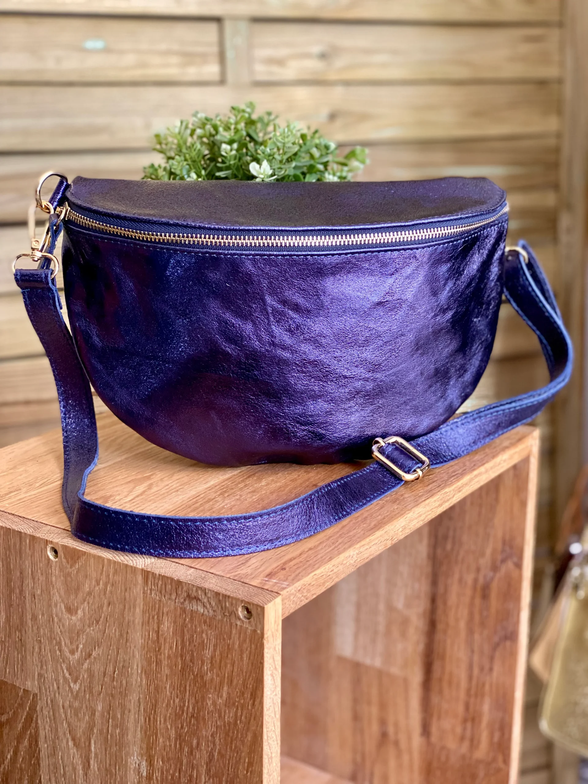 Sac banane XL en cuir irisé 30cm – JANIS – Bleu marine