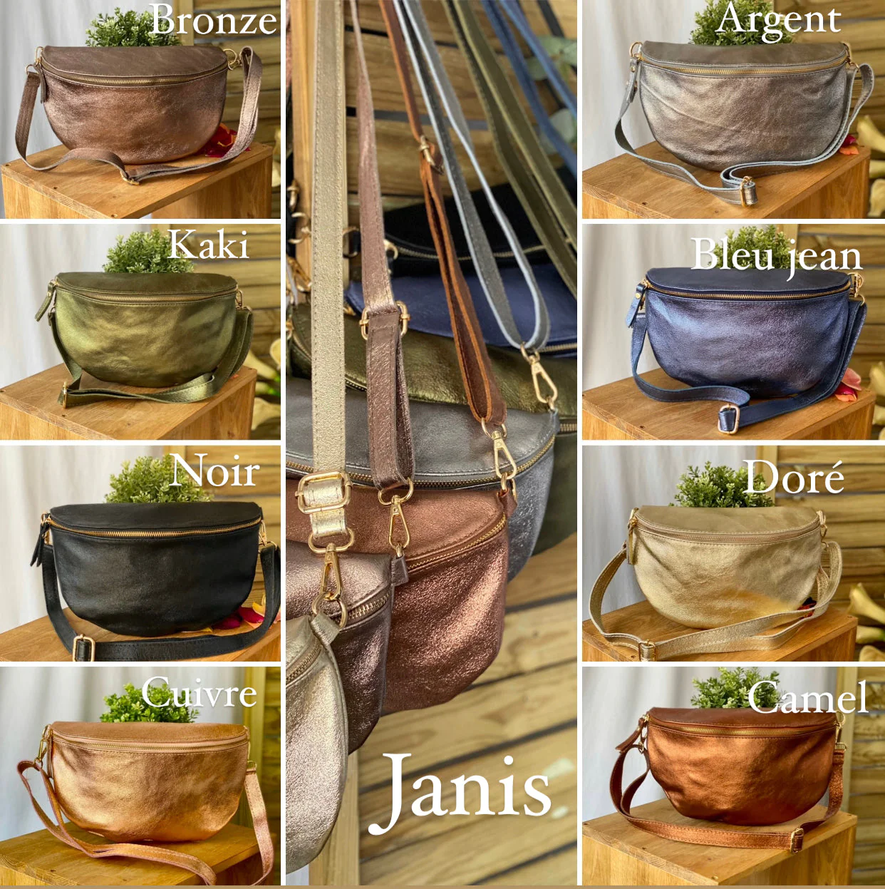 Sac banane en cuir Dispo en 9 coloris (Doré, Bronze, Cuivre, Argent, Kaki, Bleu jean, Noir, Camel, marine) Le format « XL » JANIS, JUDY ou TERRY vous permet d’emmener: un livre de poche, vos papiers d’identité / voiture, un grand porte monnaie, une paire de lunette, un paquet de mouchoirs, un rouge à lèvres, […]