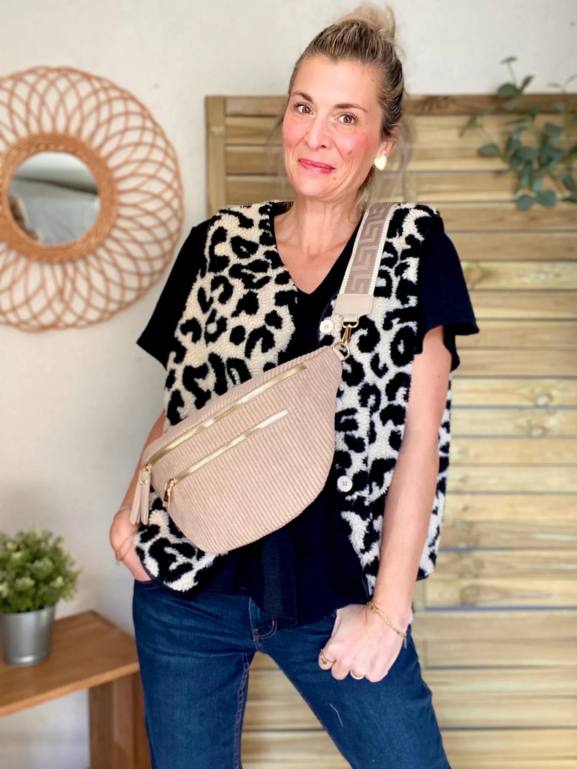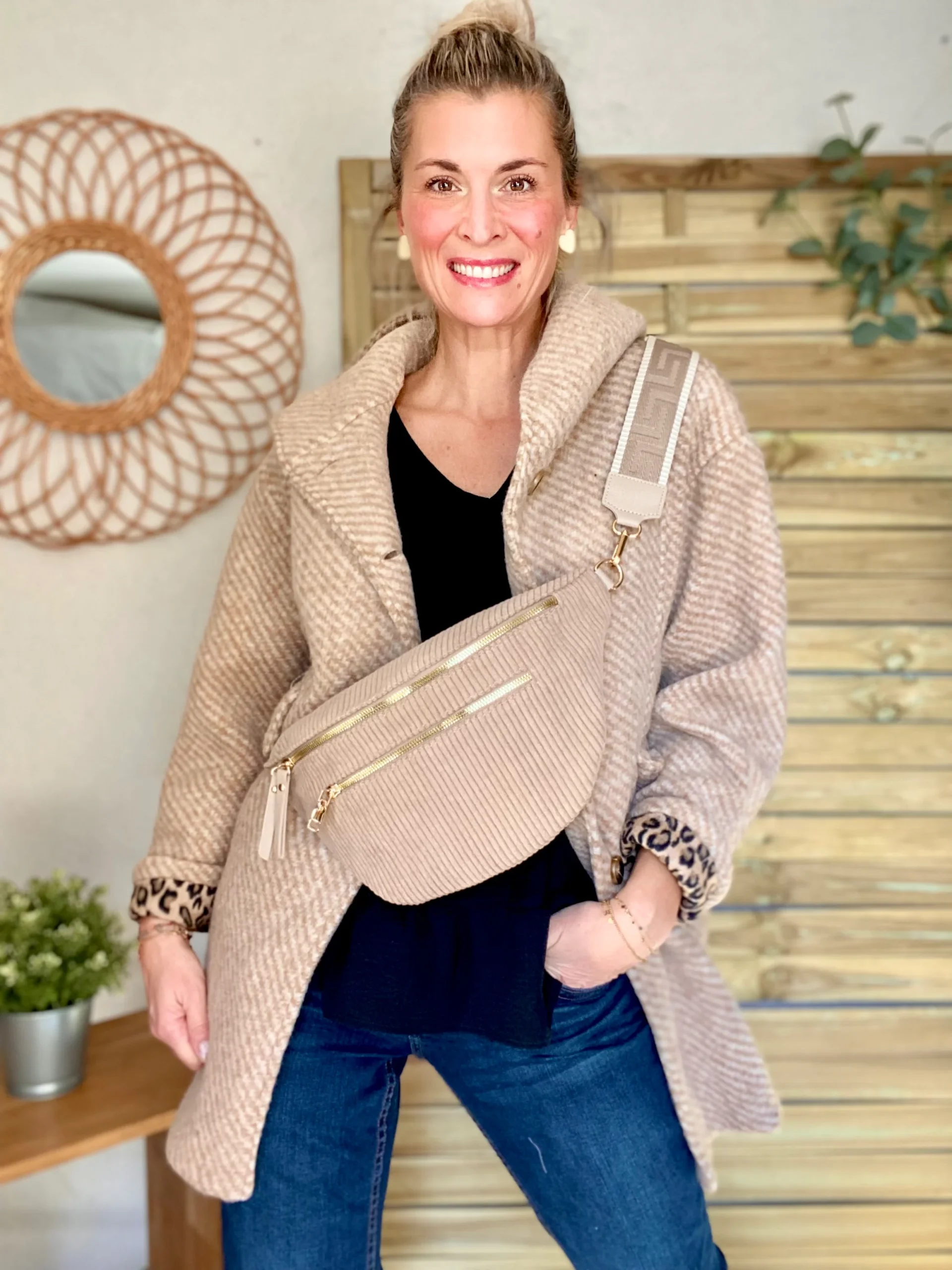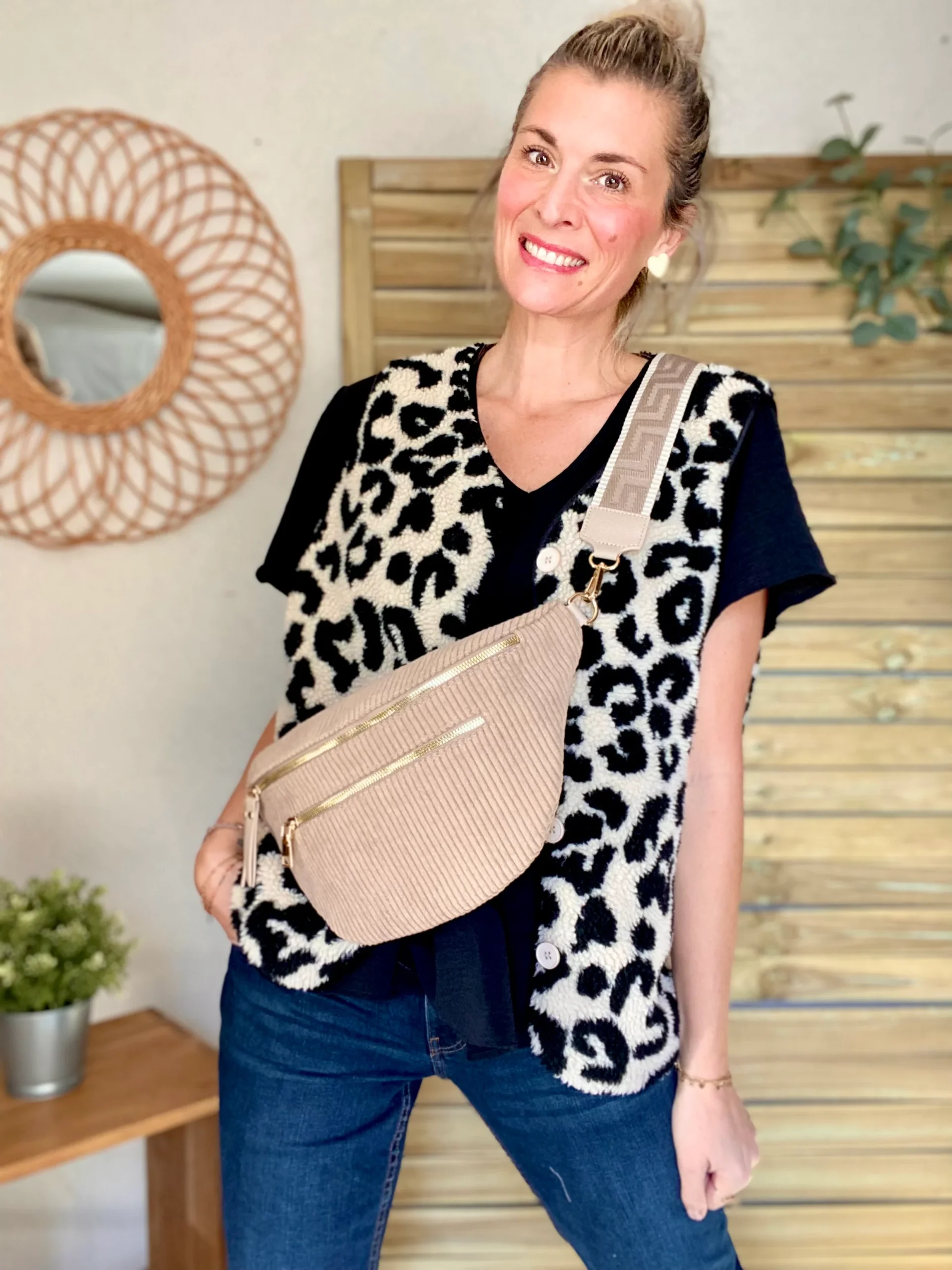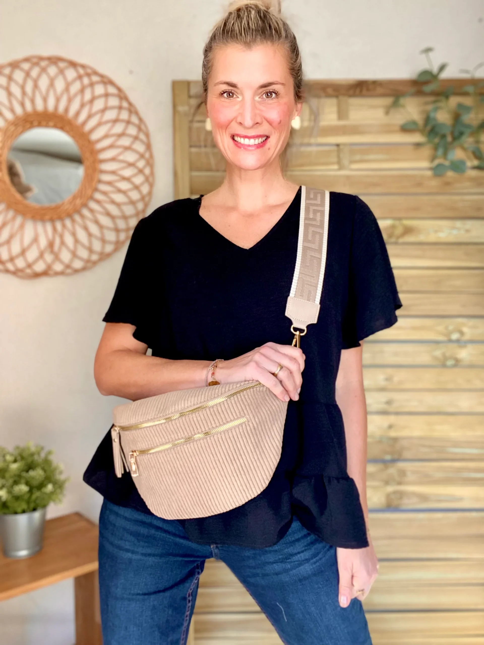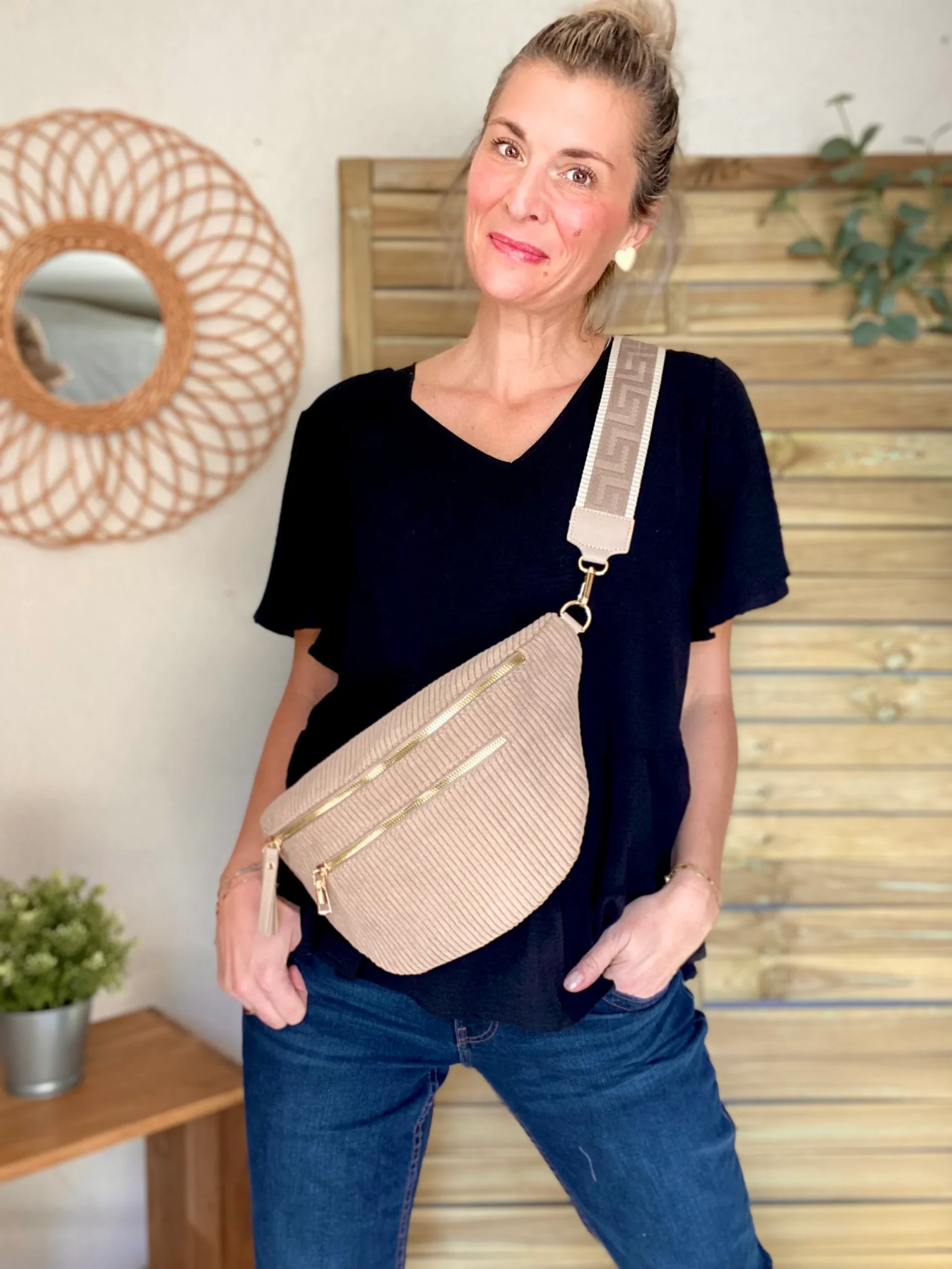 Soyez le premier à laisser votre avis sur “Sac banane XL en velours côtelé 2 zips et sangle fantaisie – WENDY – Taupe”