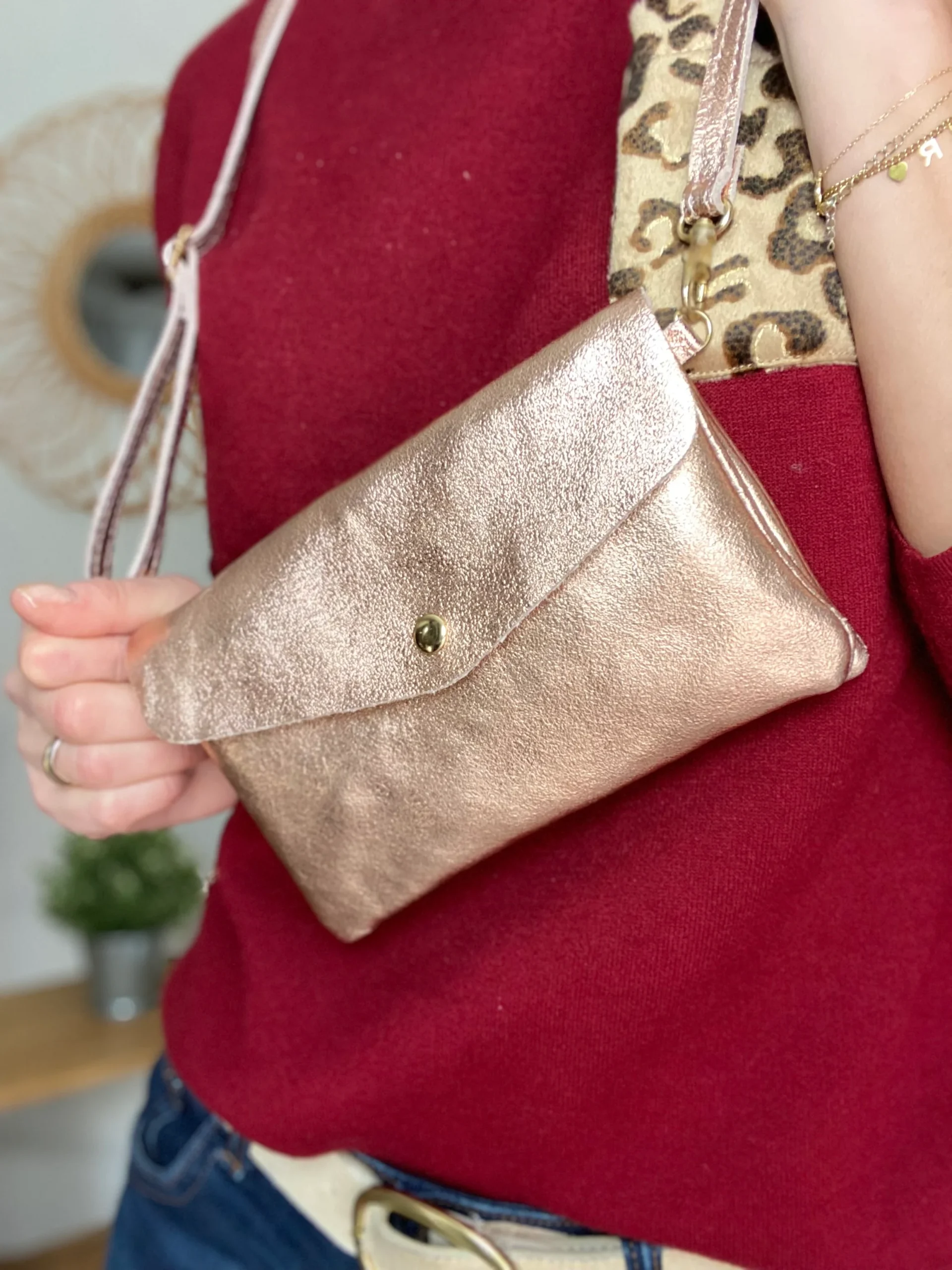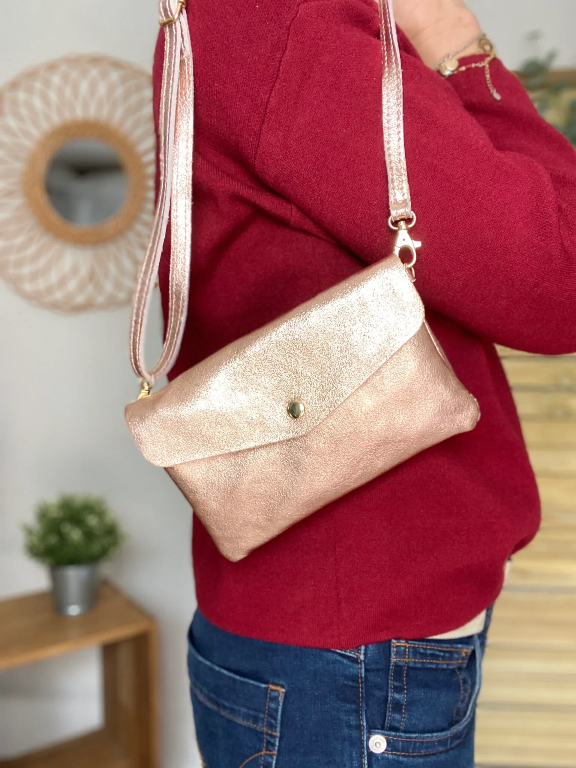 Sac bandoulière / Pochette en cuir irisé – BETTY – Cuivre (Rose Gold)