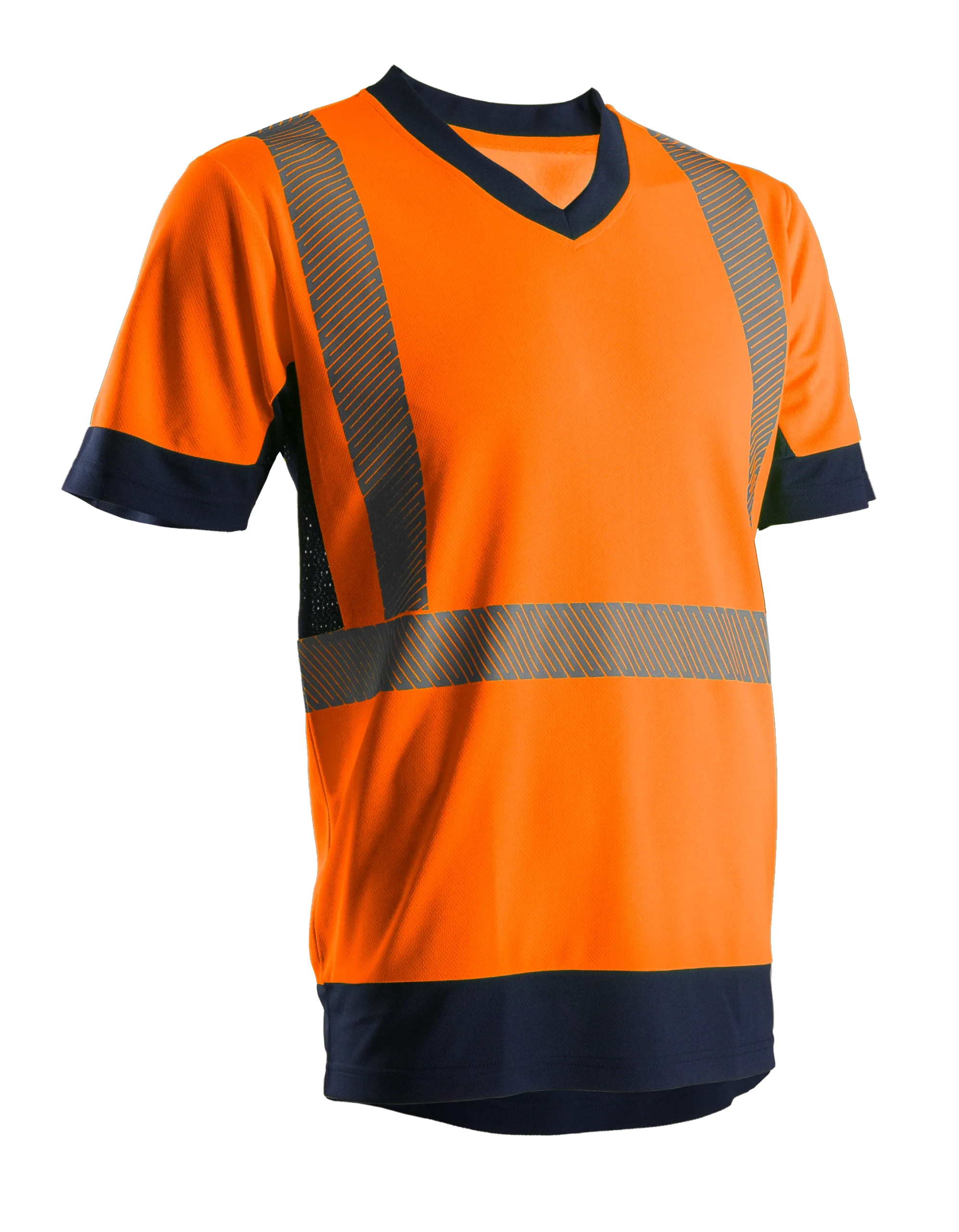 T-Shirt haute-visibilité 100% polyester birdeye manches courtes Bandes rétro-réfléchissantes segmentées Tissu fluo UPF > 50 ( protection contre les UV) Filet ajouré sous les bras pour une meilleure ventilation