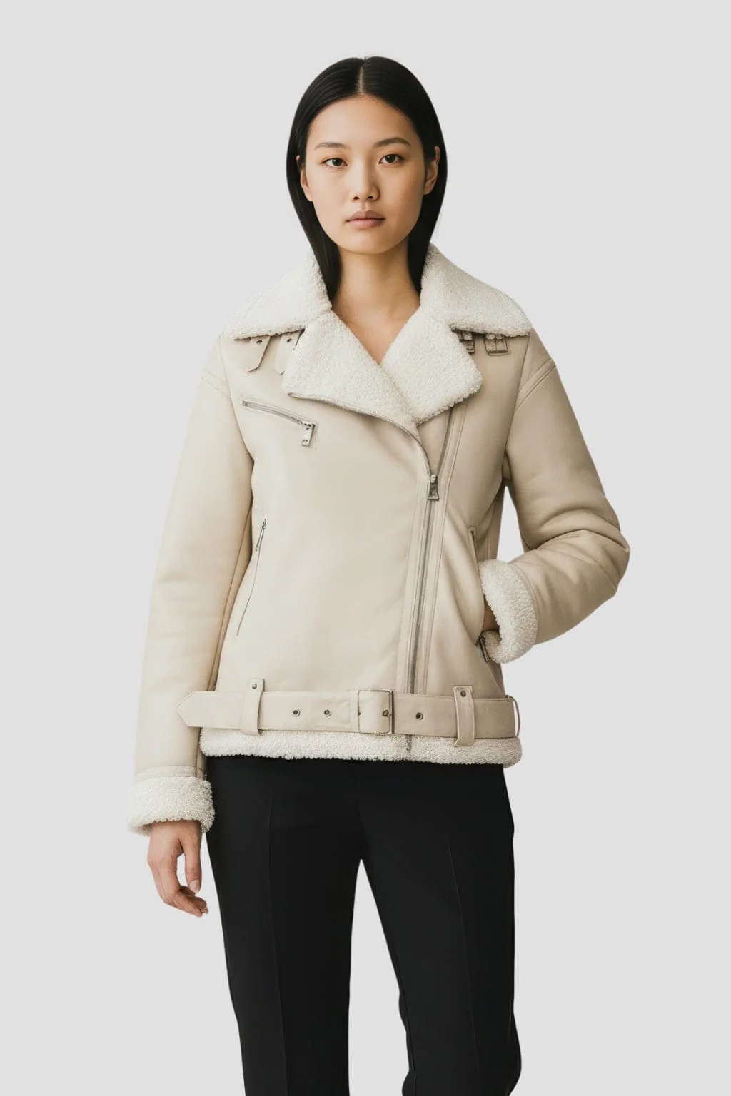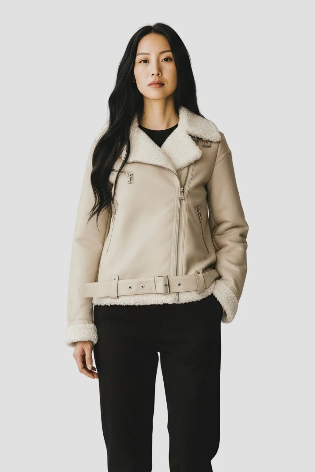 Conçue pour affronter l’hiver avec discrétion, cette pièce en daim beige combine une isolation naturelle et une esthétique épurée ; la veste fourrure daim femme joue la carte du confort luxueux grâce à une doublure intérieure épaisse qui réchauffe sans alourdir.