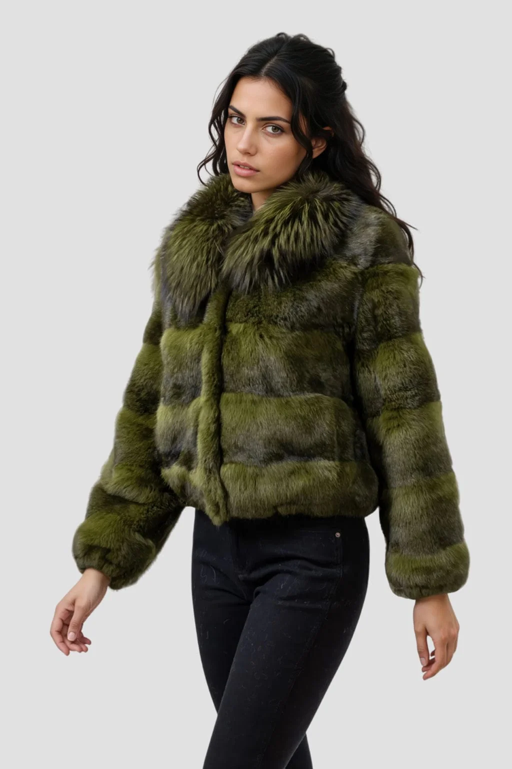 Pensée pour les trajets urbains les plus frais, cette pièce marie résistance et style fonctionnel. La veste fourrure femme kaki offre une teinte kaki travaillée avec son col en fourrure qui ajoute chaleur et caractère sans emphase.